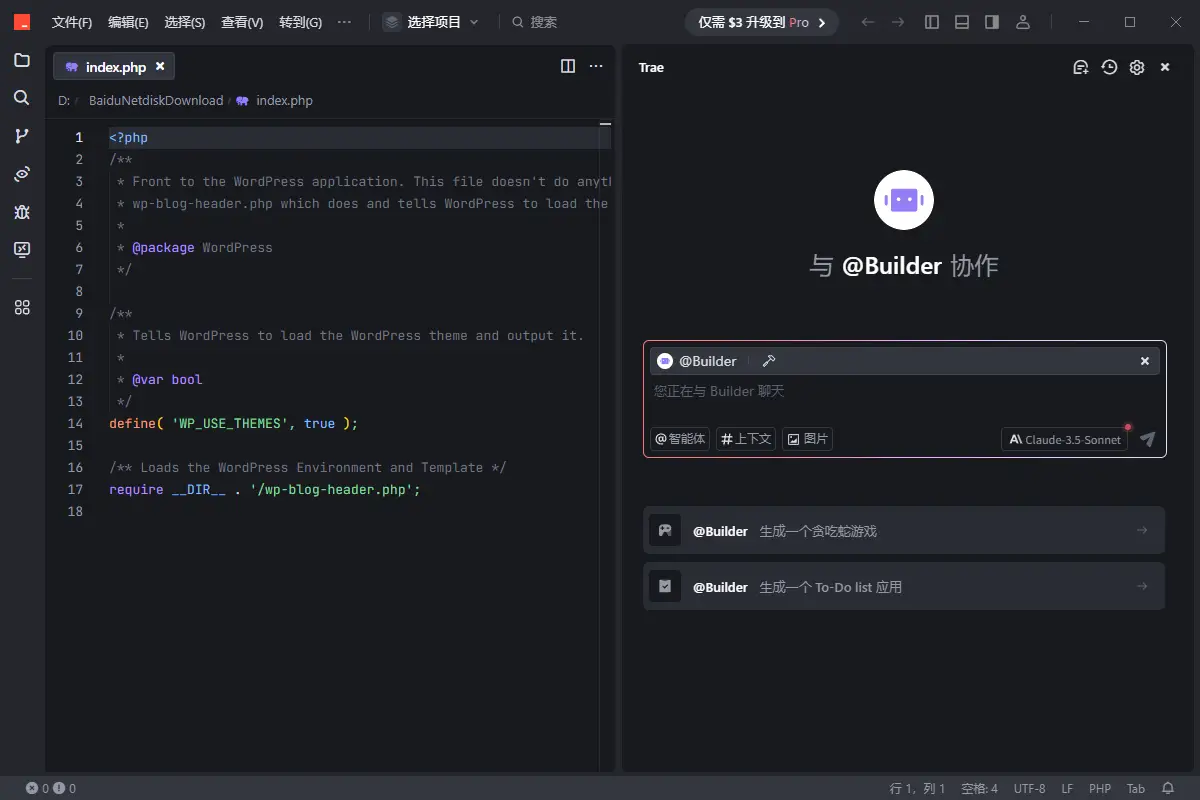 推荐免费的Trae,这3款ai编程工具得到程序员的大力推荐,我刚使用的时候不太习惯,用一段时间后可以替代很多的工作量,Trae是免费的,Cursor和Claude是收费的,都集成多个顶级ai大模型,自建MCP,基于最新版的智能体,无缝集成到工作流中,具有代码完全,代码解释和调试,bug修复,中文交互,无需编程基础,也能加快开发进度。
