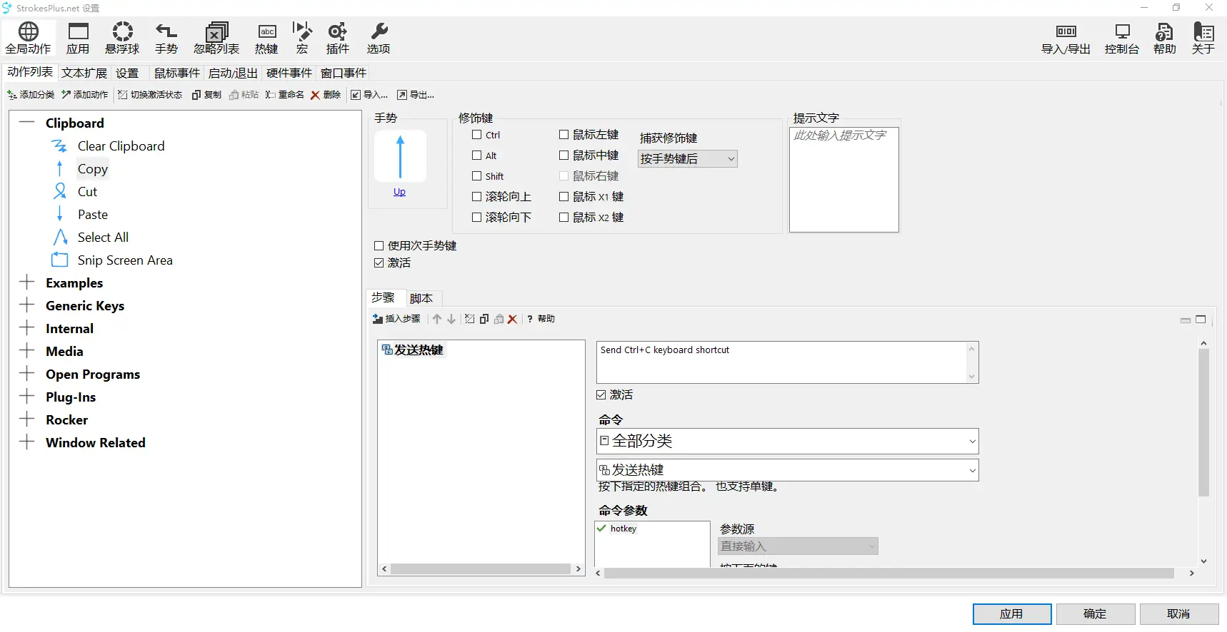 StrokesPlus是一款鼠标手势控制软件,它允许用户创建复杂的鼠标手势来执行各种计算机操作,从而提高工作效率,免去了键盘上繁杂的快捷键操作,并且可以通过脚本引擎执行更高级的自动化任务,借助摇杆支持、修饰符、热键、宏、文本扩展以及使用内置 Chrome V8 JavaScript 引擎的强大 ClearScript 界面,您可以实现的自动化几乎没有任何限制。