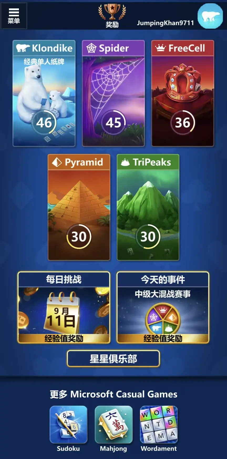 微软纸牌游戏是微软1990年开发的纸牌游戏,Solitaire Collection是它的合集,包含了纸牌接龙、蜘蛛接龙、空当接龙、三峰接龙、金字塔接龙,还有精彩的每日挑战和活动任务,使用Microsoft帐户登录以保存您的游戏进度和玩家统计数据,通过收藏、每日挑战、活动和奖励等功能挑战,解锁超过 75项成就,让您的单人纸牌技能并获得更高的玩家分数,它支持Windows版,安卓版,ios版,网页版。