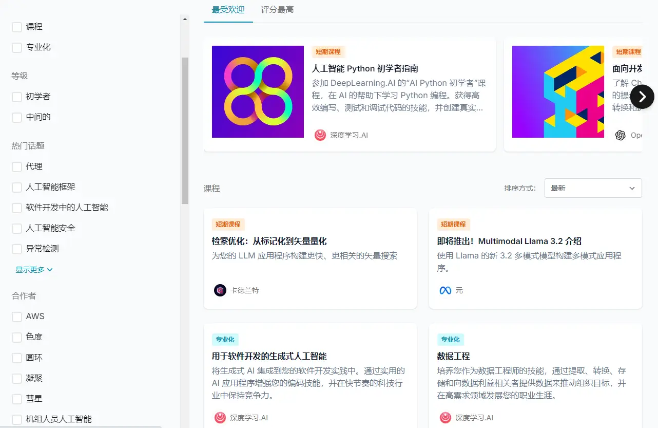 如果你想学习ai相关的硬技能,那么你一定要来这个网站,这个网站有来自谷歌、微软、meta、openai、英特尔、亚马逊等各大互联网科技公司的免费课程,教你写ai提示词、训练大模型、做ai应用,所有课程都是免费的。