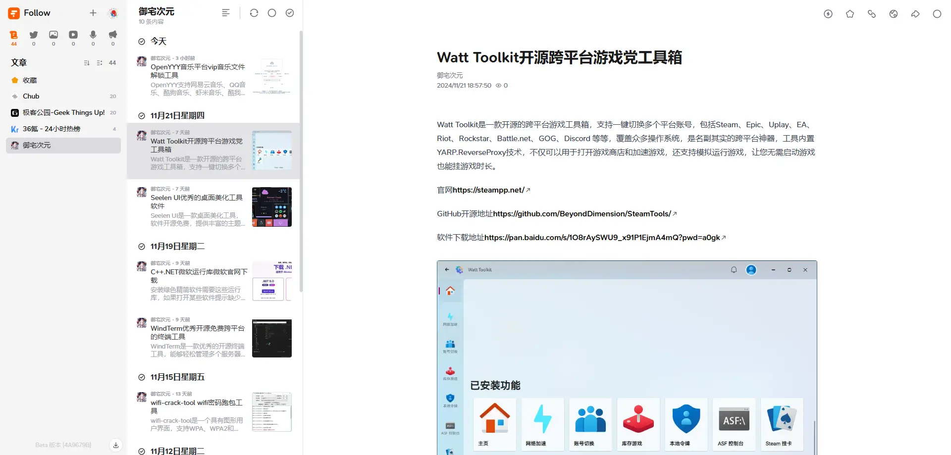GitHub开源地址https://github.com/RSSNext/Follow