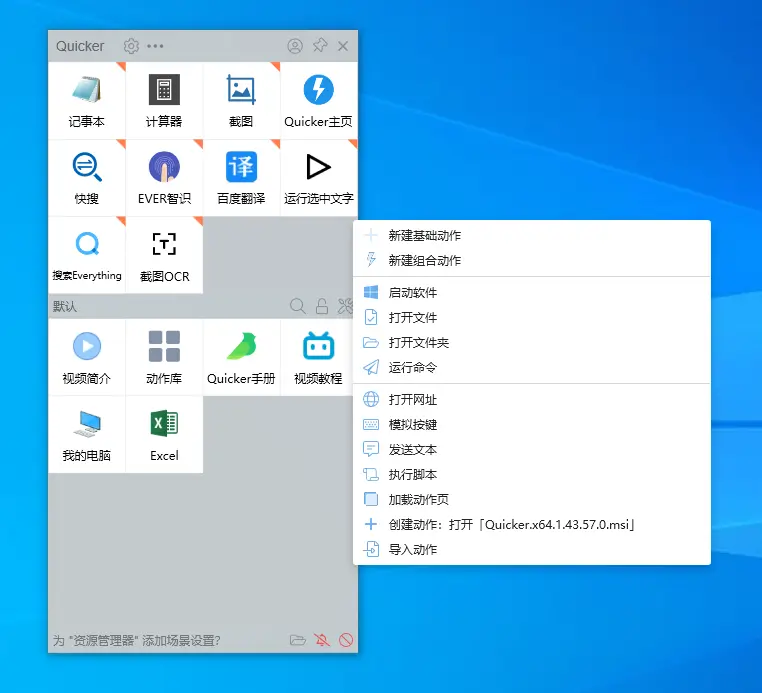Quicker是Windows下超强的效率神器,内置8000多个动作库,还能自定义动作,组合动作和积木有些相似,将不同的模块拼接起来通过“变量”在模块之间传递信息,可以连接不同的软件,完成一连贯的动作,从而提高工作效率。支持Windows、浏览器、Android系统。