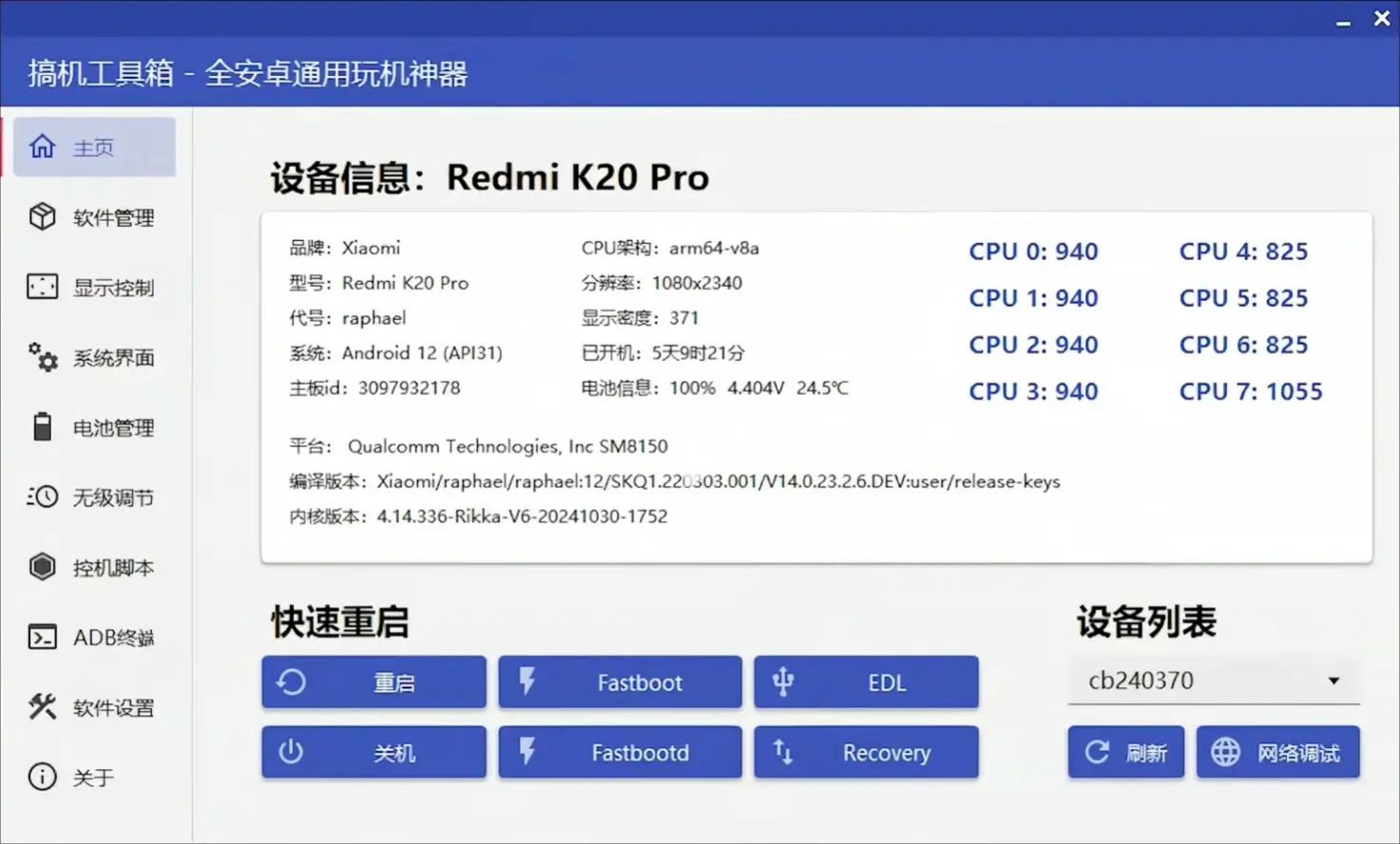 搞机工具箱这是一款可以通过ADB命令控制安卓手机的工具,全安卓系统通用,内置了诸多功能,比如,卸载app,安装app,自由调节分辨率,模拟虚拟按键,编写自动化脚本,冻结app,锁定app,屏幕投影等功能。