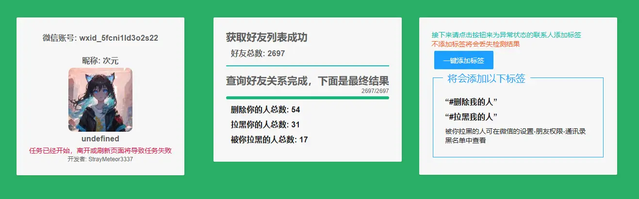 GitHub开源地址https://github.com/StrayMeteor3337/WechatRealFriends