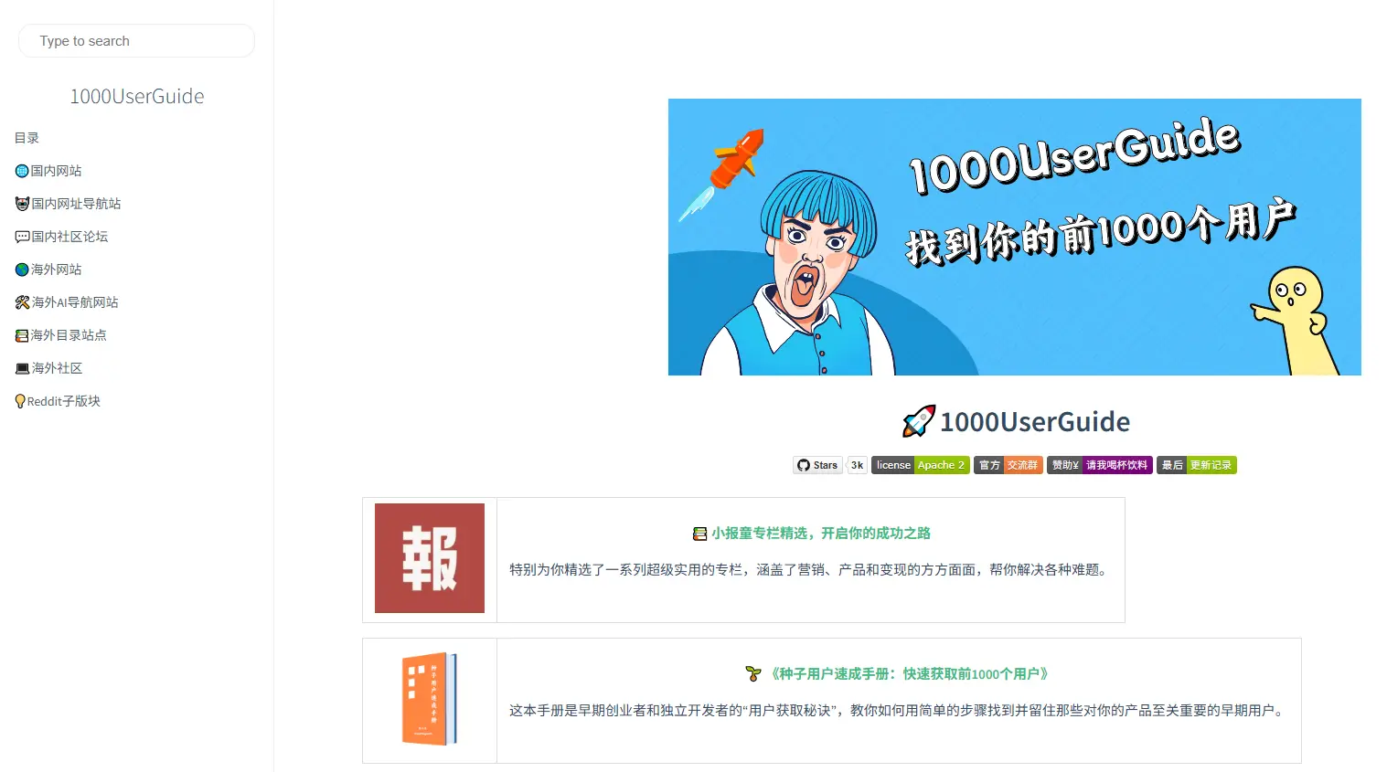 1000UserGuide出海独立开发商业推广项目管理员昨天更新338 1000UserGuide收录了大量国内外的AI工具导航、目录站点、行业论坛、推广渠道、即刻、掘金、V2EX社区,还系统性地整理了 300 多个适合产品推广的渠道,注重渠道的实用性和可操作性,确保确实能为早期产品带来曝光机会。 官网https://1000userguide.com/ GitHub开源地址https://github.com/naxiaoduo/1000UserGuide THE END酷站分享 喜欢就支持一下吧点赞8 分享QQ空间微博QQ好友海报分享复制链接